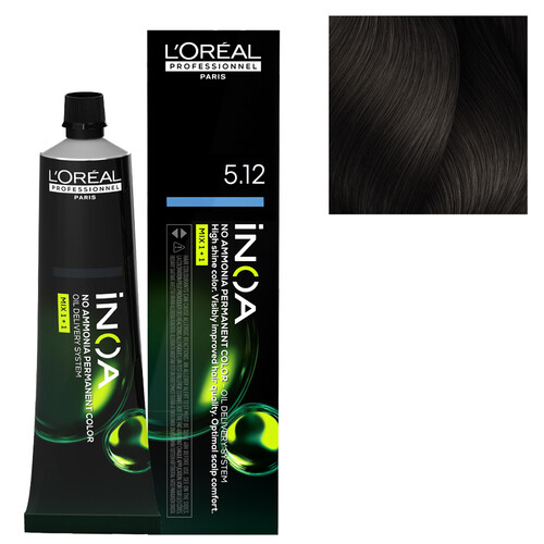 Inoa Tinta Sem Amoníaco 5.12-60ml -A sua fórmula vegan, consegue uma melhor performance, garantindo 100% da cobertura de cabelos brancos, um cabelo 48% mais brilhante e uma cor mais duradoura, mantendo sempre o cuidado do couro cabeludo.