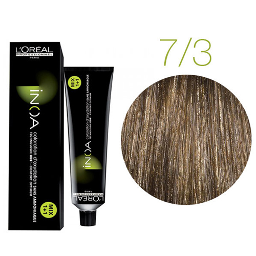 Inoa Tinta Sem Amoníaco N.7.3-60ml e sem cheiro para uma experiência única. Os cabelos são assim respeitados e o couro cabeludo é tratado de forma delicada e gentil.*Experiência reflexos naturais, um brilho sublime e uma cobertura perfeita.*96% das mulheres estão convencidas por INOA.DURABILIDADE-Coloração permanente de longa duração.