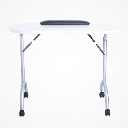 Mesas de manicure portáteis modernas e fáceis de dobrar. Incluem rodas silenciosas com freio, uma almofada confortável para manicure e uma bolsa prática para fácil transporte.
