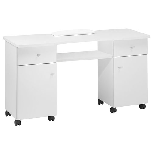 Mesa Manicura July.Acabamento em laminado a branco com Subtampo.Com portas e gavetas.Almofada para as mãos a branco em napa branca.