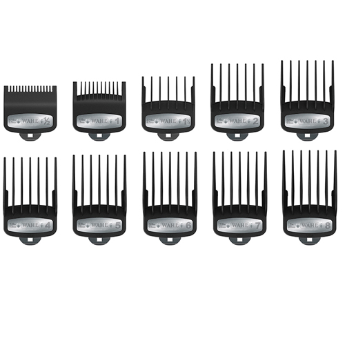 Pack 10 Pentes Wahl Premium-Novos pentes premium especiais para as máquinas de corte como supertaper, taper 2000, supertaper cordless, sênior, taper chrome, magic clipe. Estespentes evitam acidentes no corte devido à sua alça metalica que evita que o pente salte das lâminas. O material usado para a fabricação destes pentes é de vidro e mineral, fornecendo mais durabilidade e resistência.
